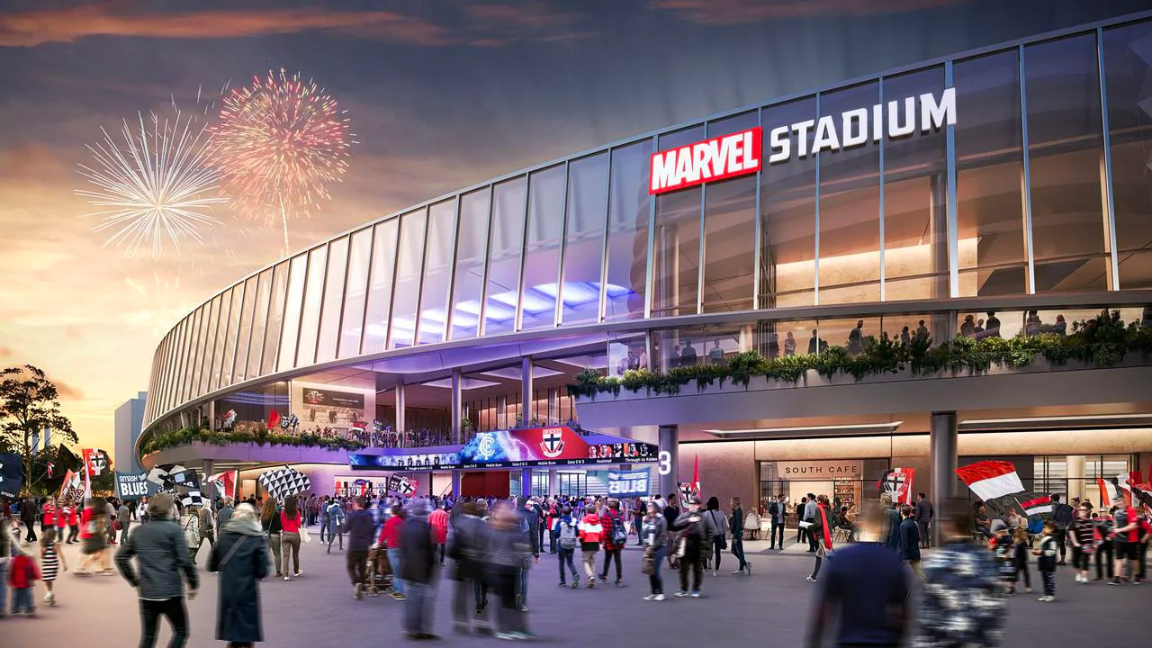 Marvel Stadium in Melbourne (formerly Docklands Stadium) is set for a major overhaul with a $225m redevelopment now in the works. Early conceptual drawings show a revamped façade, internal facilities and player facilities along with high-tech visual installations. Early plans had included hotel accommodation and conference facilities although these have now seemed to be abandoned.